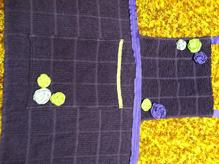 I had extra towel fabric that I did not want to waste, so I decided to add a pocket. Again, I wanted to match up the lines as best as I could. Clearly, I did great on the vertical lines; not so great on the horizontal lines. It's okay, it's only a simply project for my daughter. Besides, it kinda stands out this way.